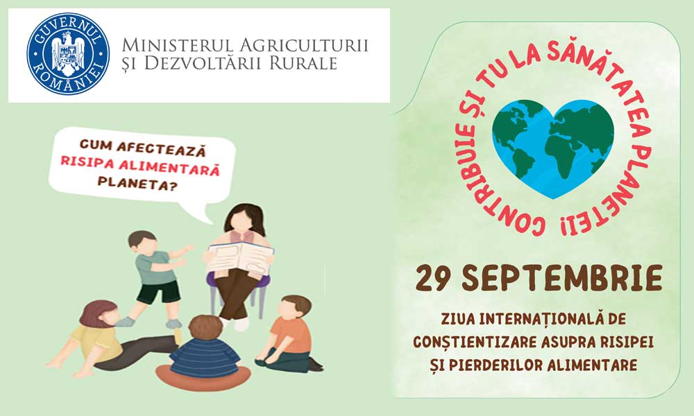 Cu ocazia Zilei Internaționale de Conștientizare asupra Risipei și Pierderilor Alimentare, Ministerul Agriculturii și Dezvoltării Rurale transmite un mesaj important privind impactul negativ al risipei alimentare asupra mediului, economiei și societății.